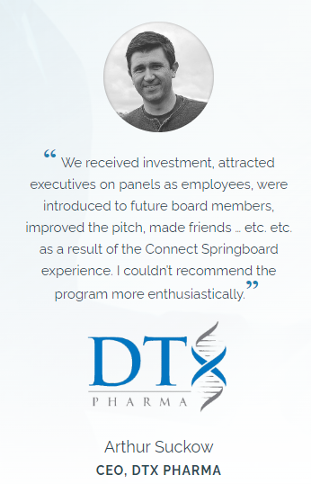 3. 창업하자마자 샌디에고의 스타트업 보육/양성기관인 CONNECT 의 startup advising program 인 Springboard Program 에 지원하였는데, 첫번째 시도에서는 탈락하고 만다. 대신 CONNECT 에서는 Artie 에게 James Callaway 라는 어드바이저를 매칭시켜주고 일주일에 3시간 정도 1:1 미팅을 하며 비즈니스 모델을 리뷰하도록 도와주었다. 그리고 같은 해 12월에 CONNECT 의 Springboard 프로그램에 재지원하여 선정되었고, 샌디에고의 바이오텤 인큐베이터인 JLABS 에도 입주하며 본격적으로 비즈니스에 속도를 내기 시작한다.